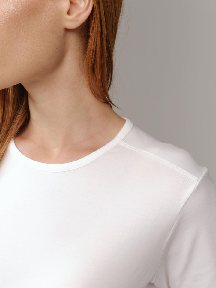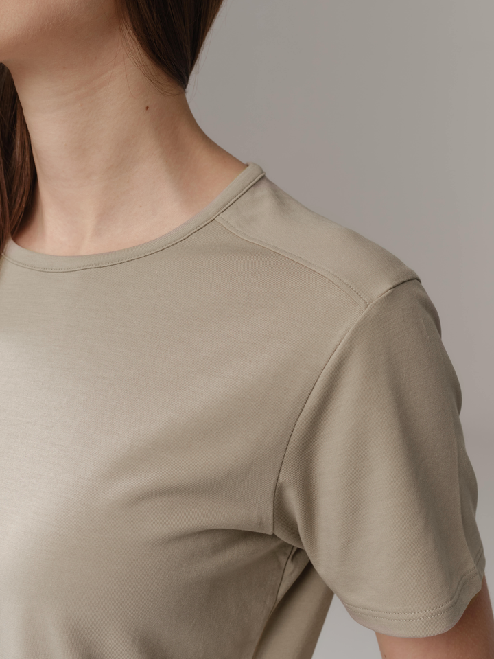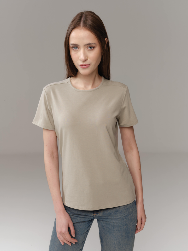 Tu nuevo polo esencial favorito, diseñado para acompañarte durante todo tu día. Hecho de la tela AlgaKnit con fibra de alga marina y algodón pima para mayor suavidad y comodidad. Tiene un fit regular, ideal para combinarlo con palazzos, jeans o leggings.