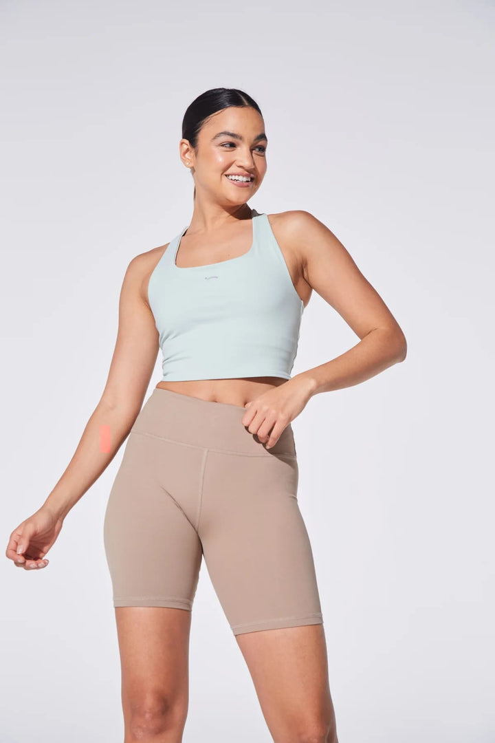 Es un top con un bra interno que ofrece soporte total en todo momento. Ideal para practicar deporte.